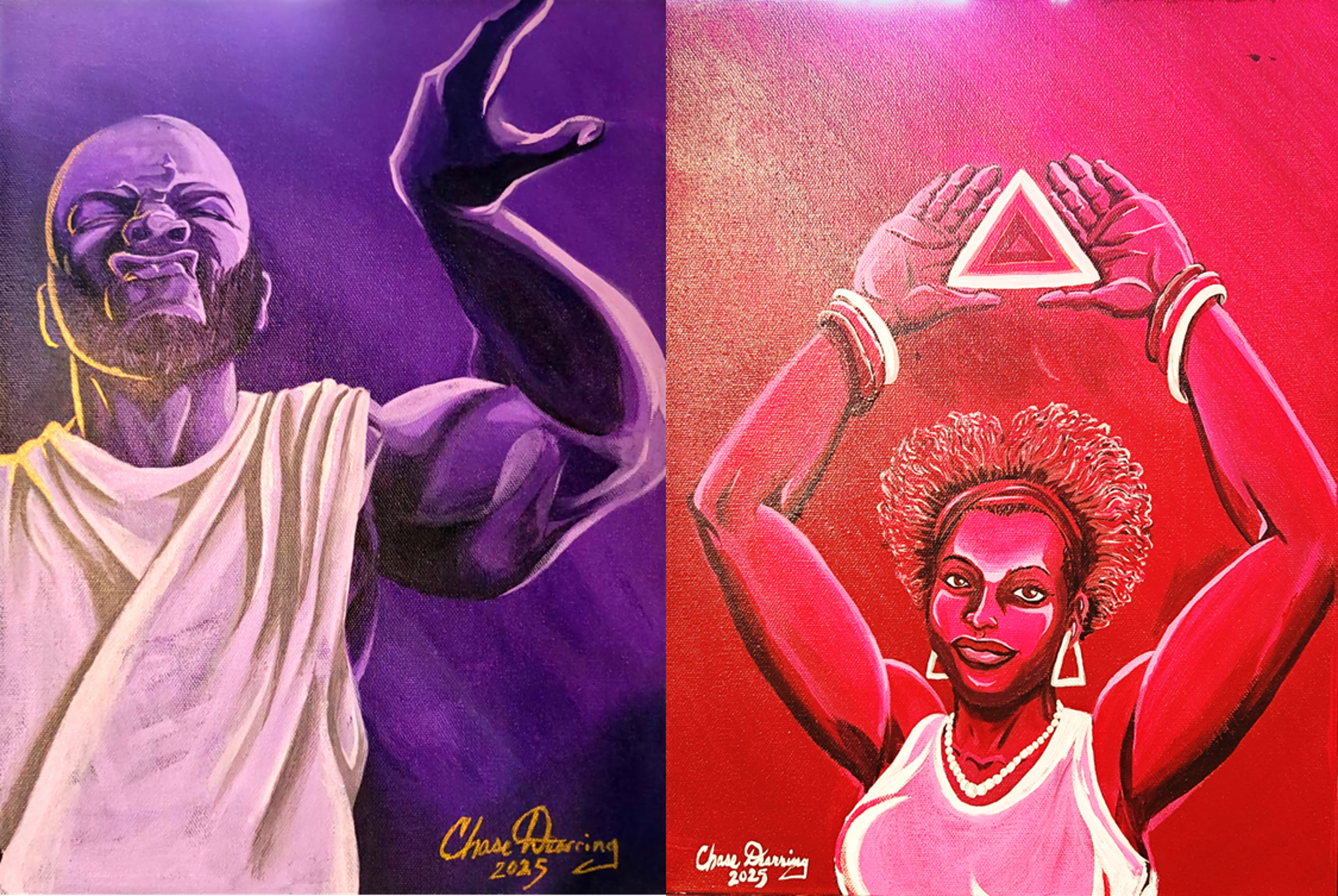 Two Tau Kappa Kappa auction pieces. One representing the Ques, the other representing the Deltas.